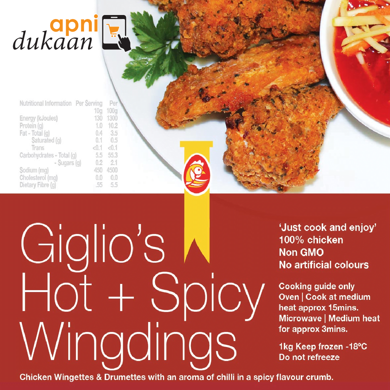 Order Hand Slaughtered Halal Giglios Chicken Hot and Spicy Wingdings 1kg from Apni Dukaan and we will deliver it to your home.